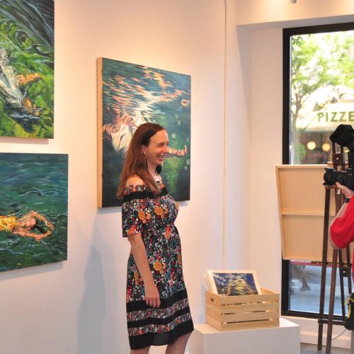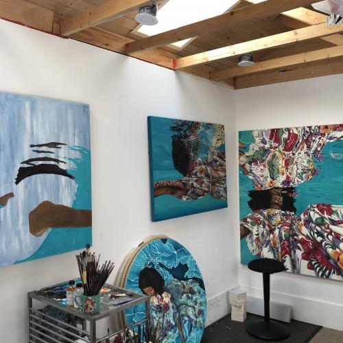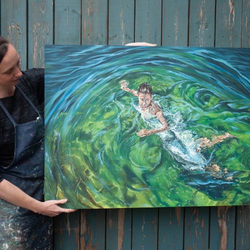 As a contemporary figurative artist, Alanna works with oil on wood panel. Her style is the intersection between realism and painterly. Alanna is drawn to painting the human form as a way of connecting with the viewer on an emotional and deeply human experience. In recent works the figures have a fragile weightlessness paused in time and in movement. The works are calming and tranquil. Colours and contrast interact with each other and the paintings are built up through multiple thin layers of paint. Alanna has a desire to create the illusion of transparency through brushstrokes.